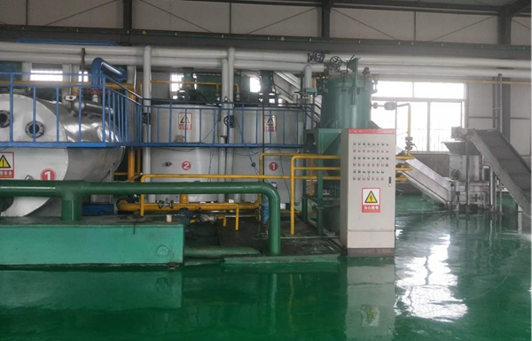 原料經(jīng)刨片機(jī)將物料切成易融化片狀,再經(jīng)輸送機(jī)輸送至預(yù)熔罐進(jìn)行解凍預(yù)熔,當(dāng)原料融化成糊狀時(shí)由濃漿泵將其打入真空熔煉罐,在真空熔煉罐內(nèi)經(jīng)過加熱熔煉、攪拌、脫水后經(jīng)熔煉罐下部閥門放出毛油與油渣,在放料過程中,下部油渣分離槽內(nèi)刮板將油渣輸送至液壓榨油機(jī),毛油由分離槽下部經(jīng)濾網(wǎng)流入毛油罐。油渣經(jīng)液壓榨油機(jī)榨油后油餅內(nèi)還含有大量油脂,所以還需再將油餅破碎后進(jìn)行螺旋壓榨,經(jīng)螺旋榨油機(jī)壓榨后的油餅再次經(jīng)過粉碎打包便成為飼料肉粉。